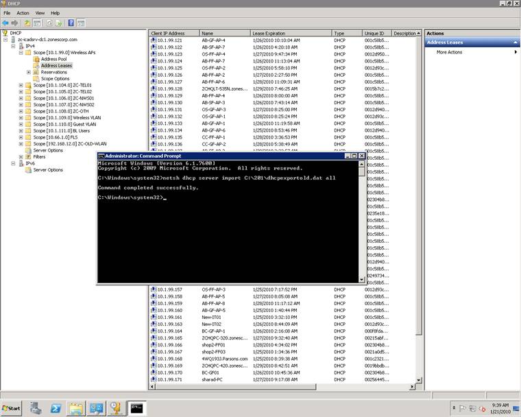 See in the below snpashot that our new Windows Server 2008 R2 has all the IP Address leases after this migration.