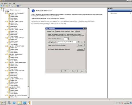 After the successful migration of DHCP server database from Windows Server 2003 DHCP Server to Windows Server 2008 R2 DHCP Server, we can also tunned the DHCP Server “Conflict Dectection Settings”, so after having this settings configured on our new DHCP Server (Windows Server 2008 R2), our new DHCP Server first ping the all scope’s available IP Addresses, for checking that weather this IP Address is alive in the NETWORK or not, if it is then DHCP Server wont give this IP address, and will move the next AVAILABLE IP ADDRESS.
