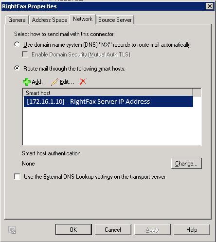 Integrating RightFax Server with Exchange Server 2010 for Relaying Emails for DOMAIN.FAX (RightFax Domain) SMTP Namespace