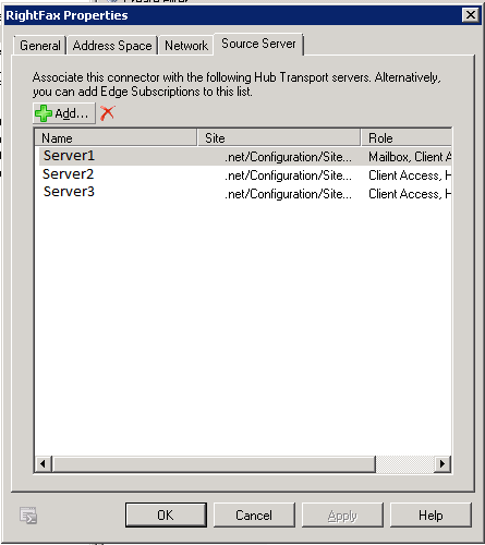 Add: all the Exchange Hub Transport Servers for this connector: