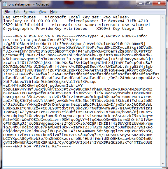 Then you will have the generated PrivateKey_Name.pem in the same directory, from where you ran the OpenSSL binary: