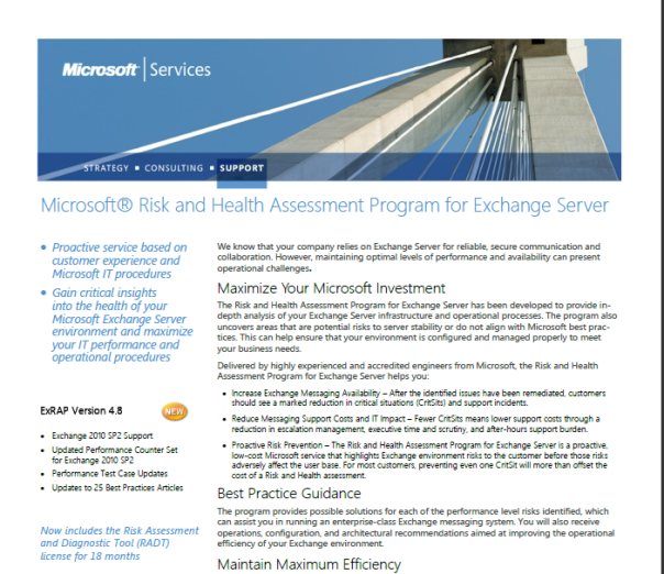 Microsoft Risk and Health Assessment Services for Microsoft Exchange
