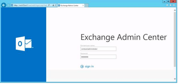 Since we have installed our Exchange 2013 boxes in the above step, we can now browse the Exchange Administration Center web-management interface using the this URL: https://Exch13CASFQDN/ecp