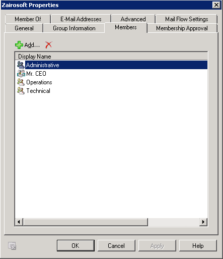 Now we will set the Zairosoft Distribution Group as Hierarchical Group, which tells the system that this is going to be a Distribution Group, which will contain other Distribution Group, and at the event of drill down, it will show the other member Distribution Group in the Address Book.