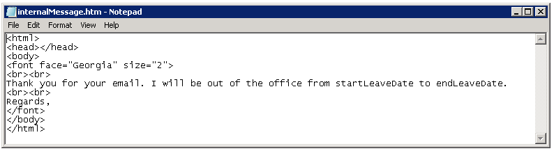 Step 2: Beautifying your Out Of Office message with formatting the HTML/HTM used by PowerShell script