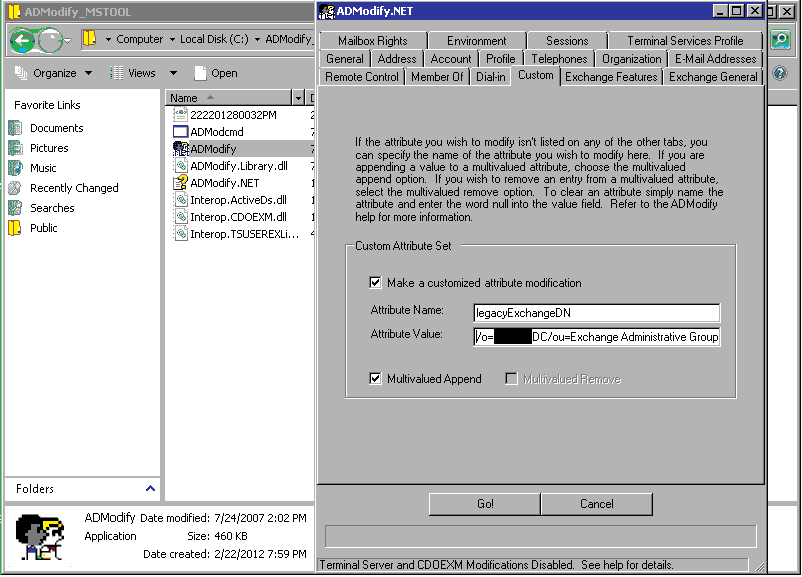 Note: While appending legacyExchagneDN value for all the Mail-Enabled Contacts, what you should consider and take care before you perform changes using ADModify: