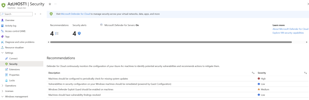 - Security and defender coverage is for both Azure Local host machines and guest machine using Azure Arc agent.