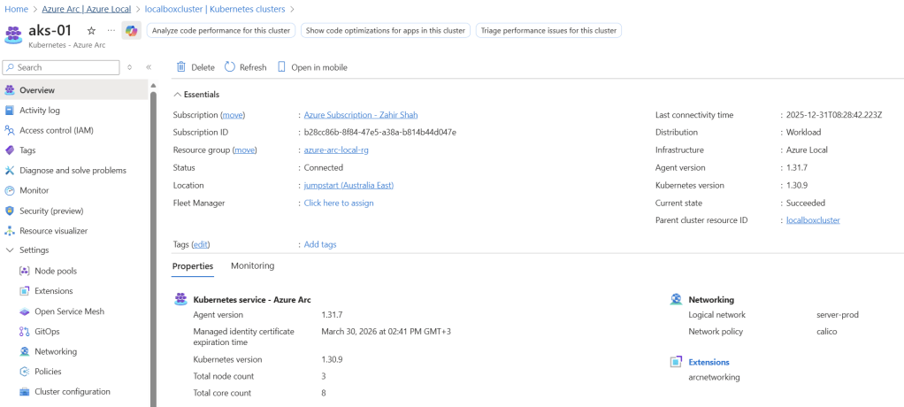 Arc‑Enabled Kubernetes (AKS on Azure Local)