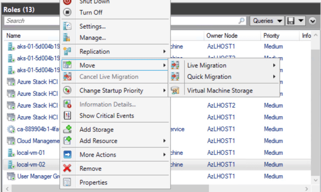 Host‑to‑host migration uses Failover Clustering tools.
