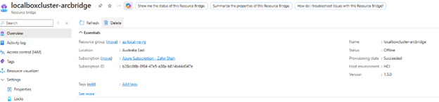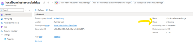After you perform the above mentioned operation, you would see resource bridge is online: